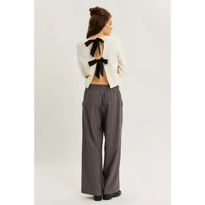 - Round neck - Contrast bow tie back - Knit sweater top - Long-sleeves