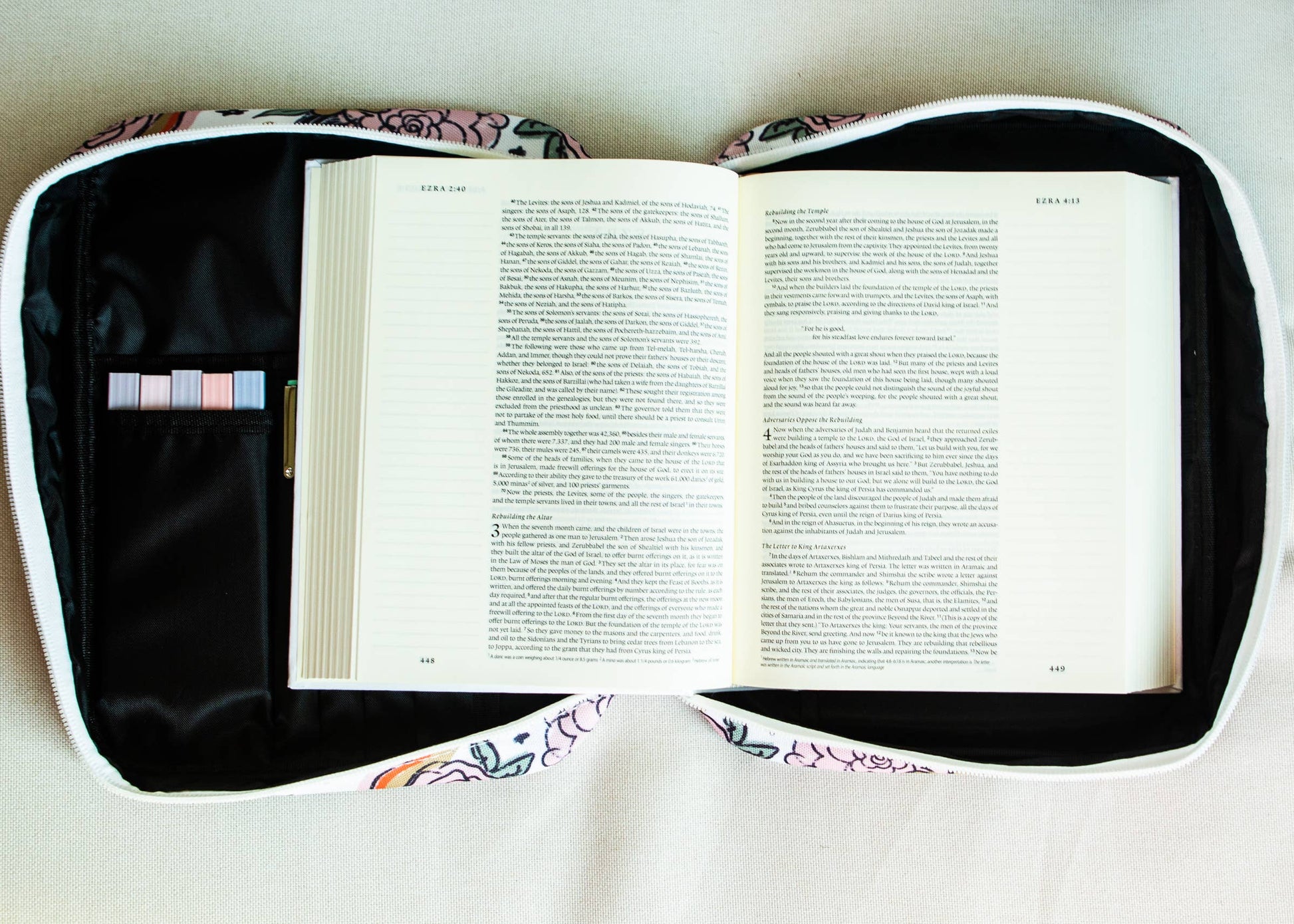Similar to our Bible Carrier Bags, these Bible covers are a little more compact. Perfect for carrying your Bible and a few necessities.