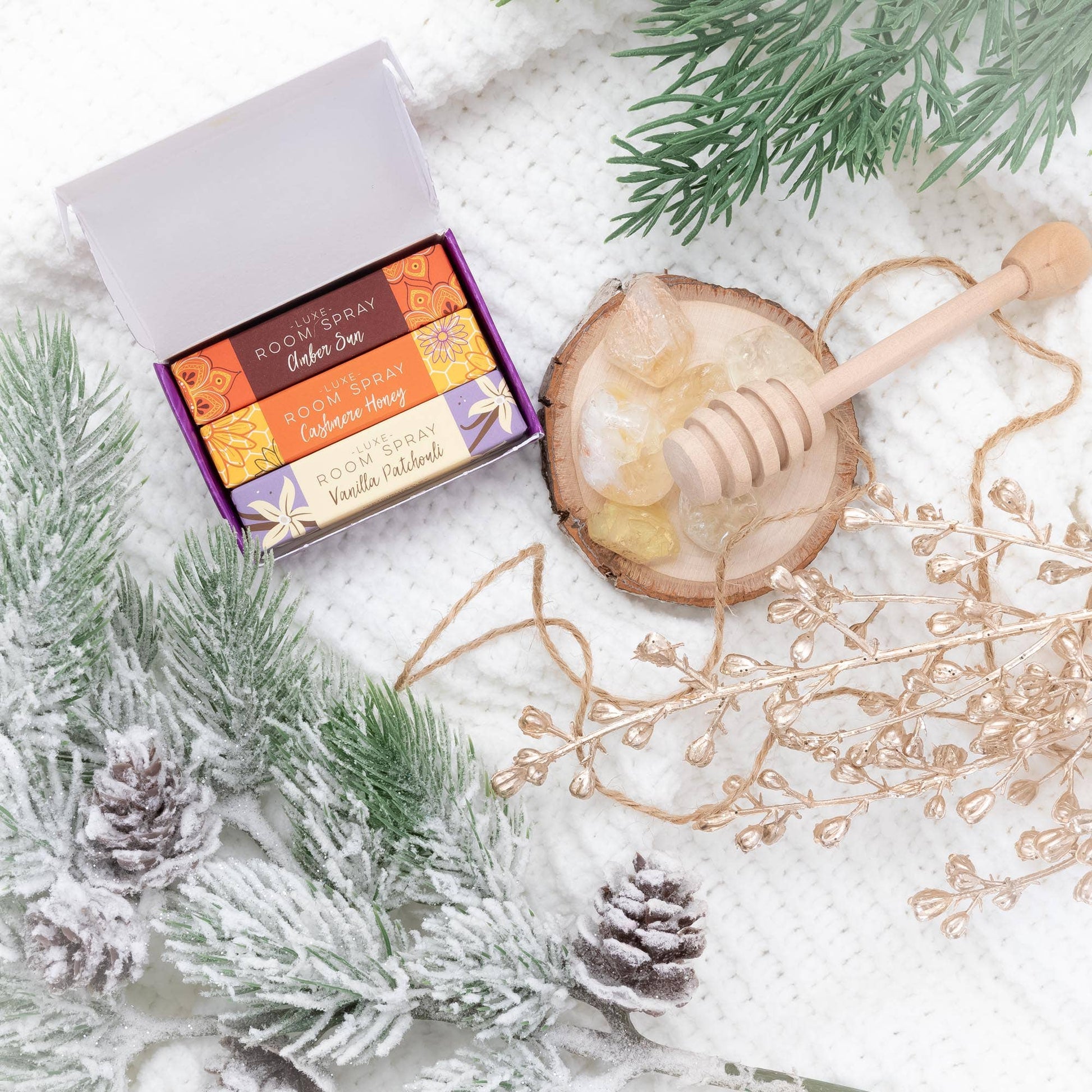 A sample set of 3 mini room sprays - perfect for on-the-go! Freshen up your car, office, hotel, gym bag, etc.!