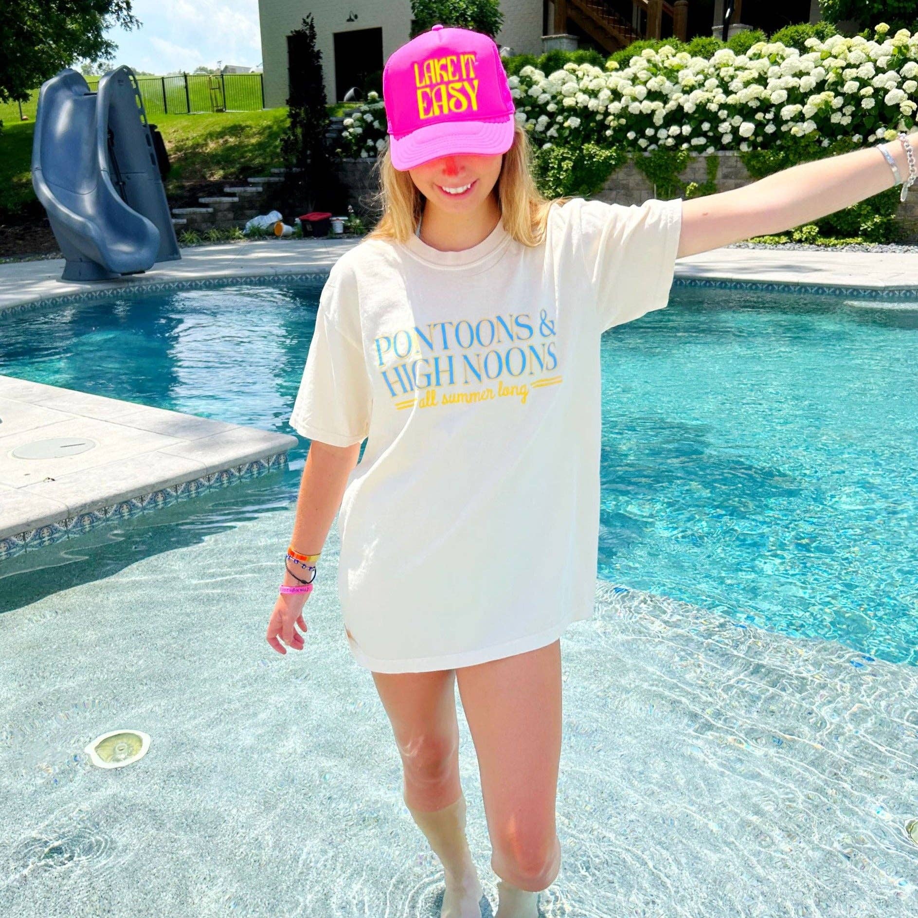 Gear up for a day on the water with our Pontoons & High Noons Tee! Made with premium materials, this tee is perfect for all your summer adventures. Enjoy the comfort and style of this quirky tee with its unique design inspired by days spent on the pontoon and sipping high noon cocktails.