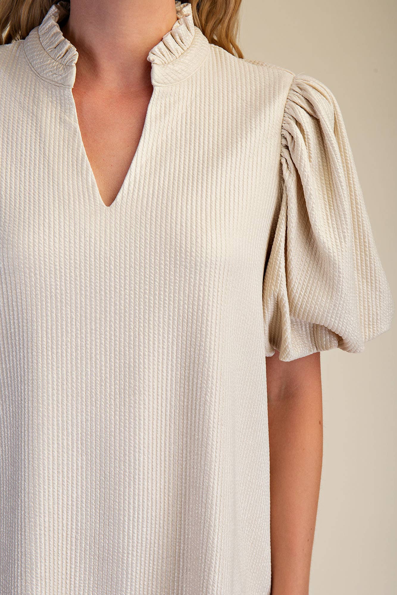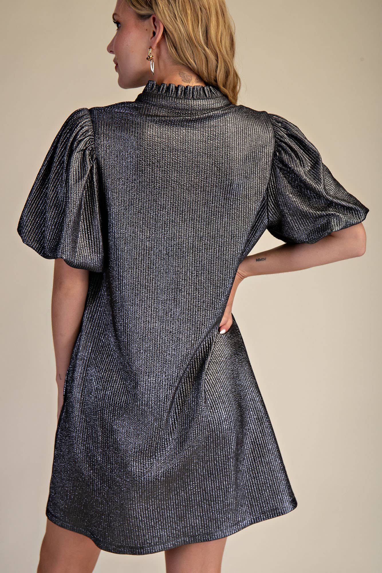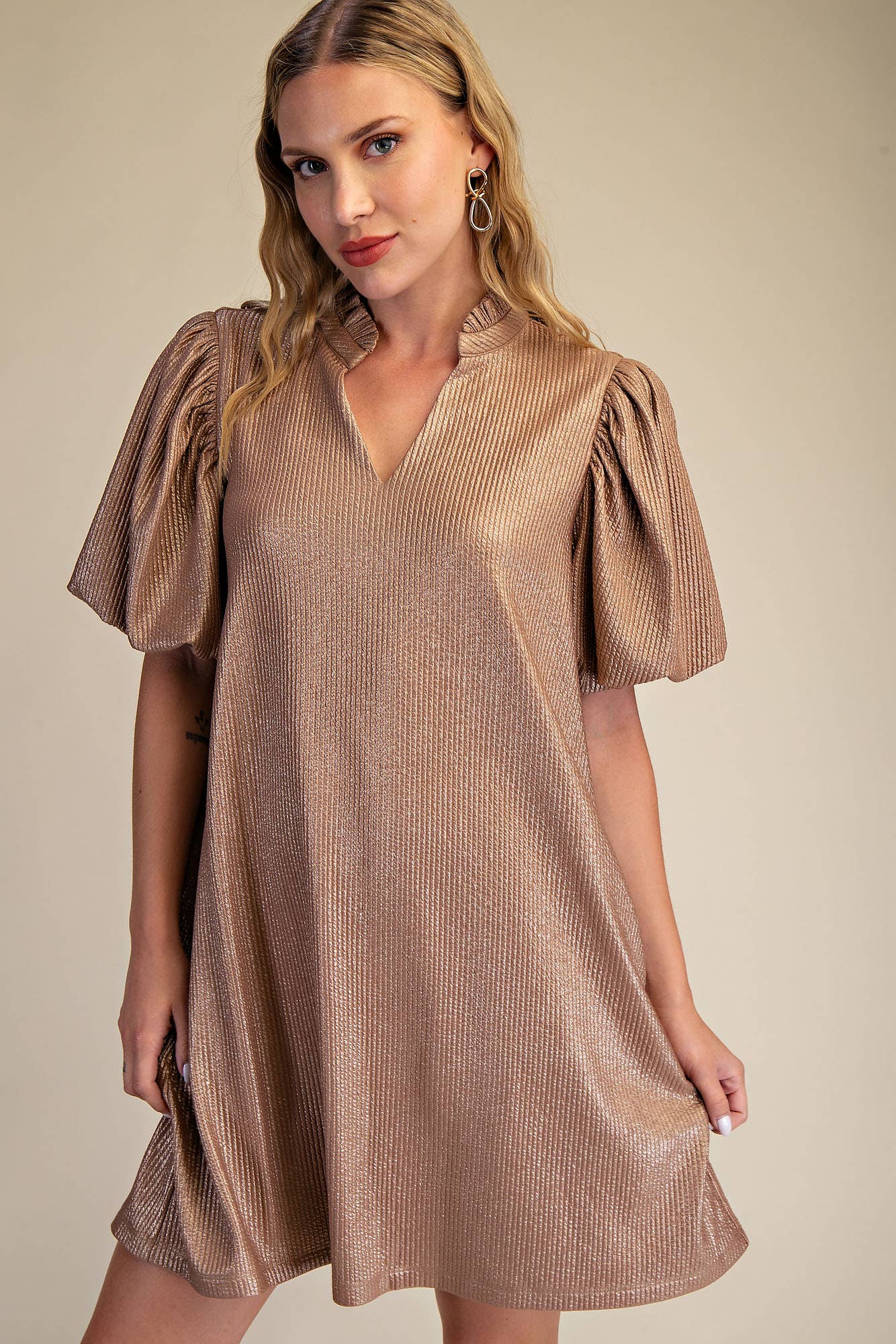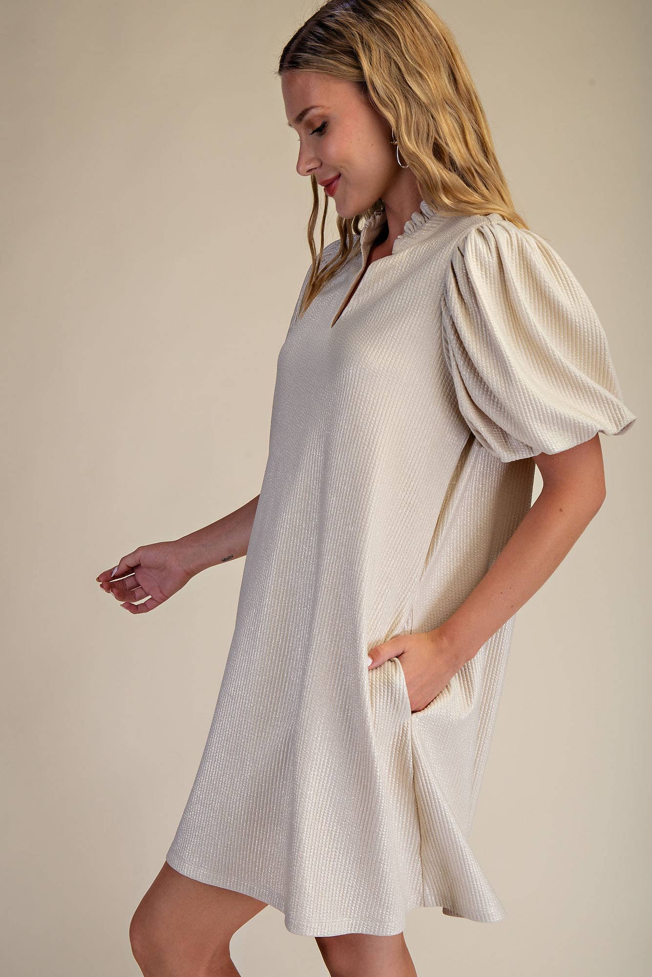 Ruffle V-Neck Puff Sleeve Mini Dress