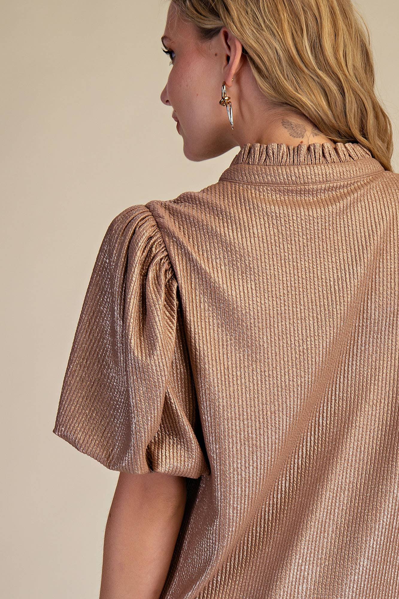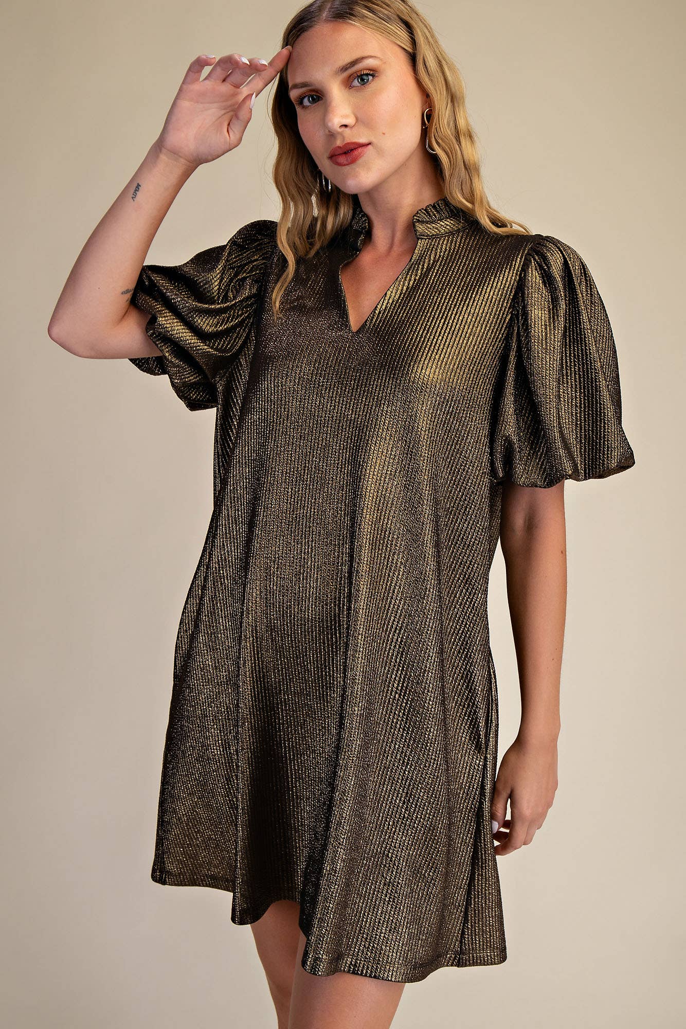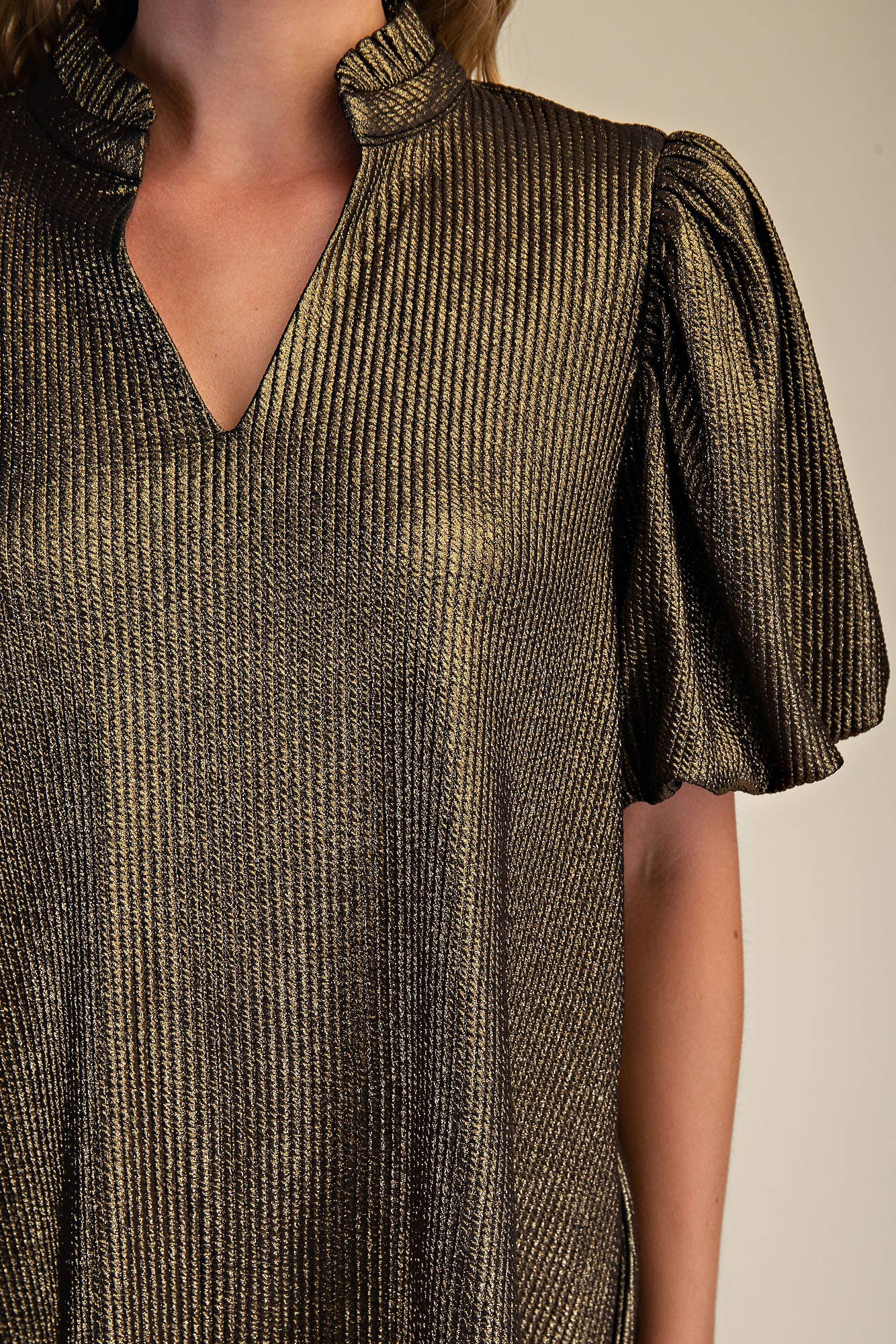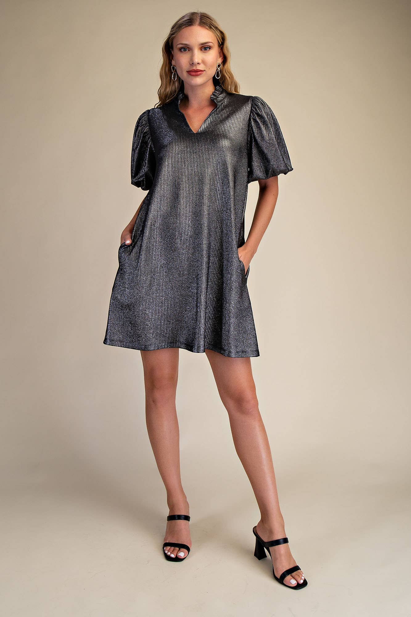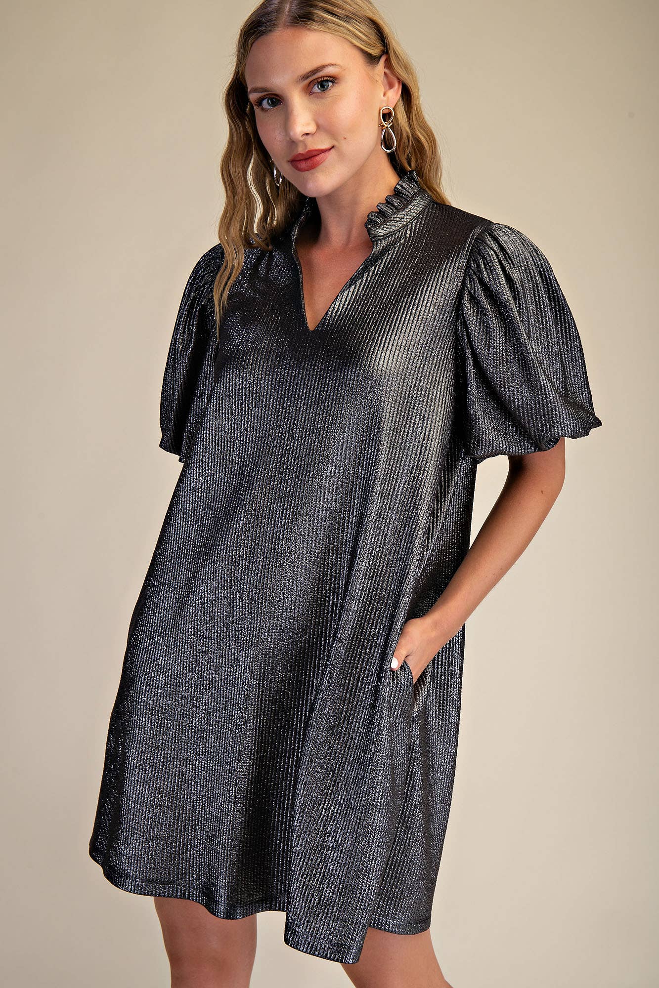 Ruffle V-Neck Puff Sleeve Mini Dress