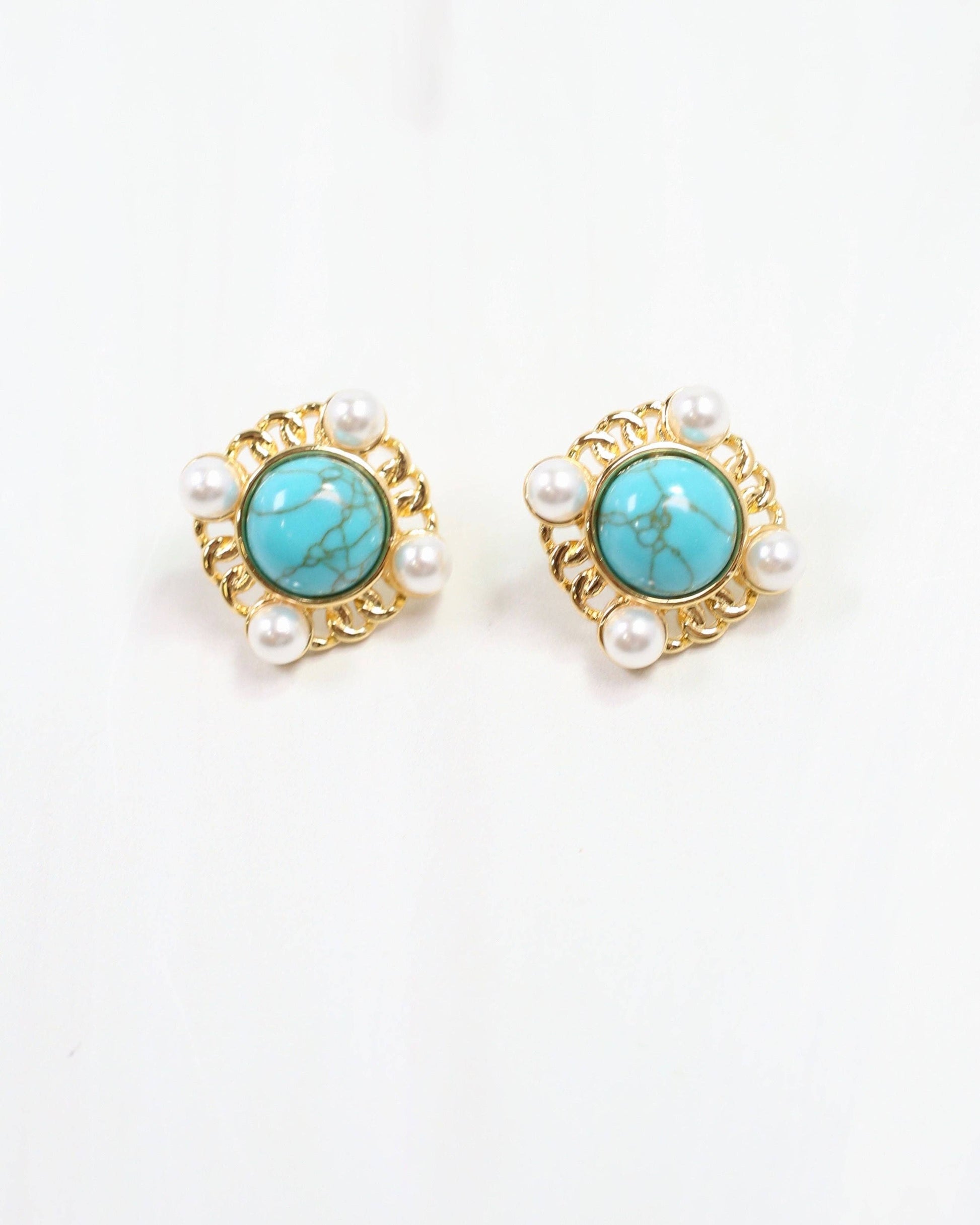 Sante Fe Turquoise and Pearl Stud Gold: Default